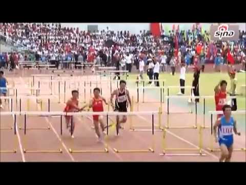 En este vídeo podemos ver a un atleta chino que se tropieza en las dos primeras vallas, pero en las demás ya no se molesta ni en saltarlas, directamente las devora. Además finaliza la carrera como si nada hubiera sucedido.